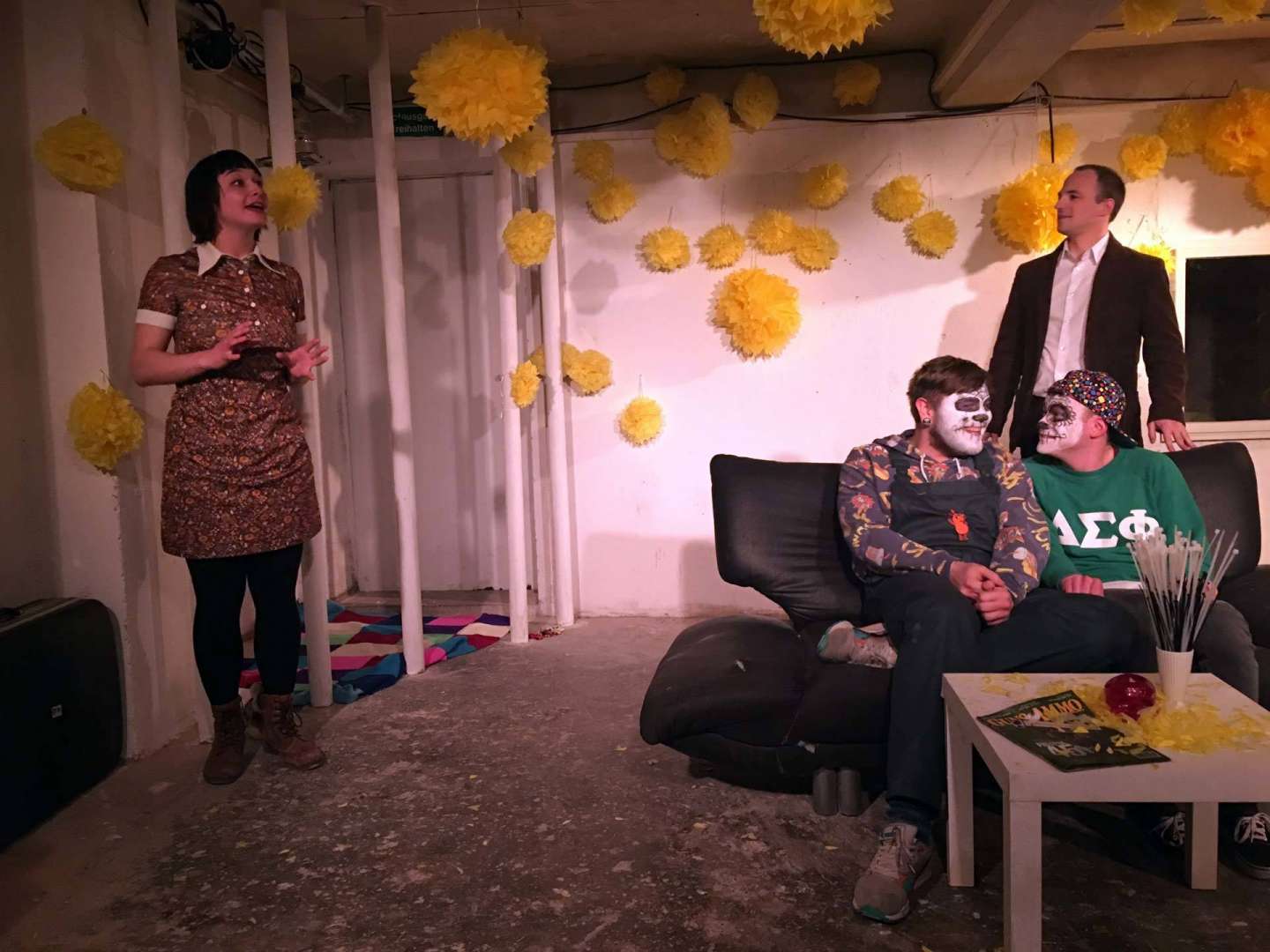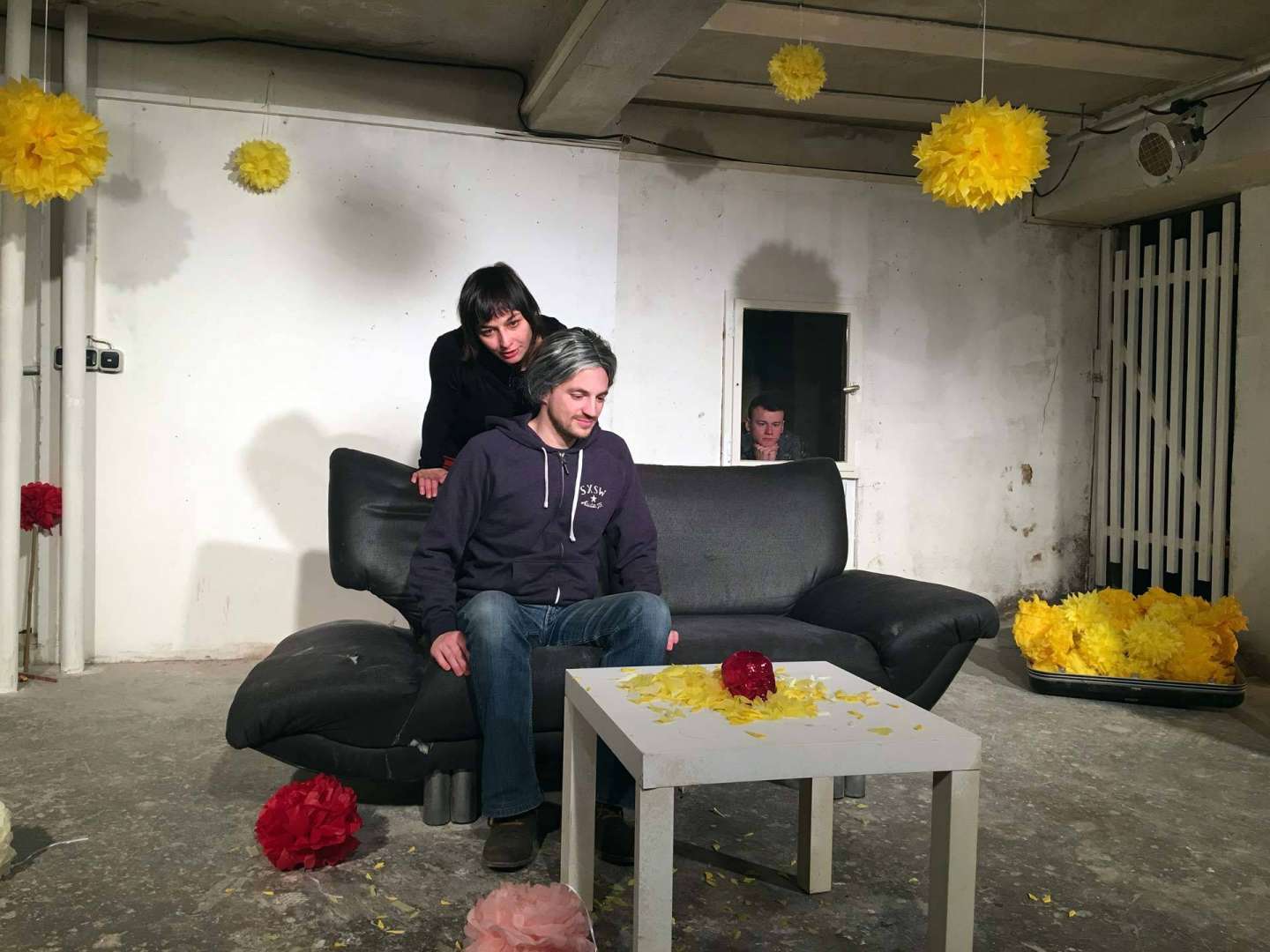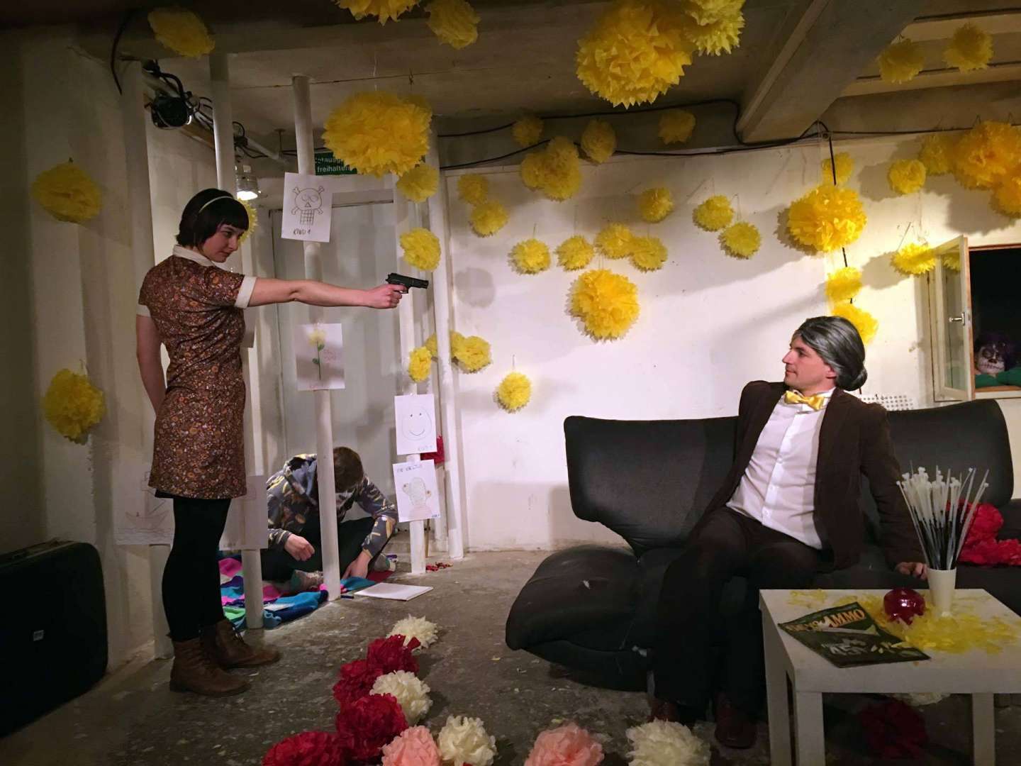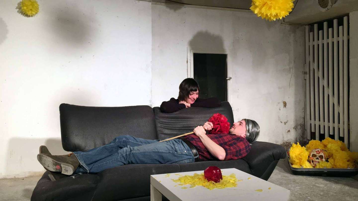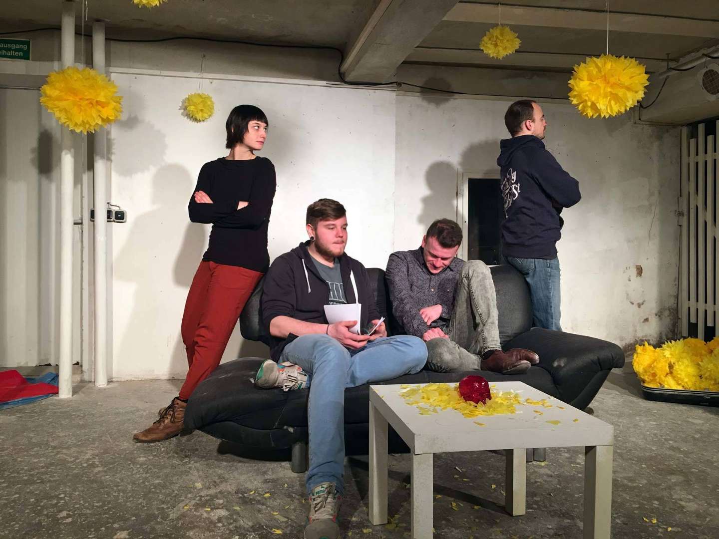 Ihr seit jetzt etwas verwirrt? Macht nichts. Man kann die Welt halt auf unterschiedliche Arten wahrnehmen. Für die Zeit des Stückes habe ich mich für Annas Variante entschieden. Ich habe mich einfach hingegeben und treiben lassen. Auf dem Flyer zum Stück steht noch „Ein surrealer Reigen über Leichen im Keller, Zeitparadoxe sowie Tagträume auf dem Balkon. Gruselig. Komisch. Philosophisch“ Kann ich so unterschreiben und es macht viel Spaß dieser Geschichte zu folgen.