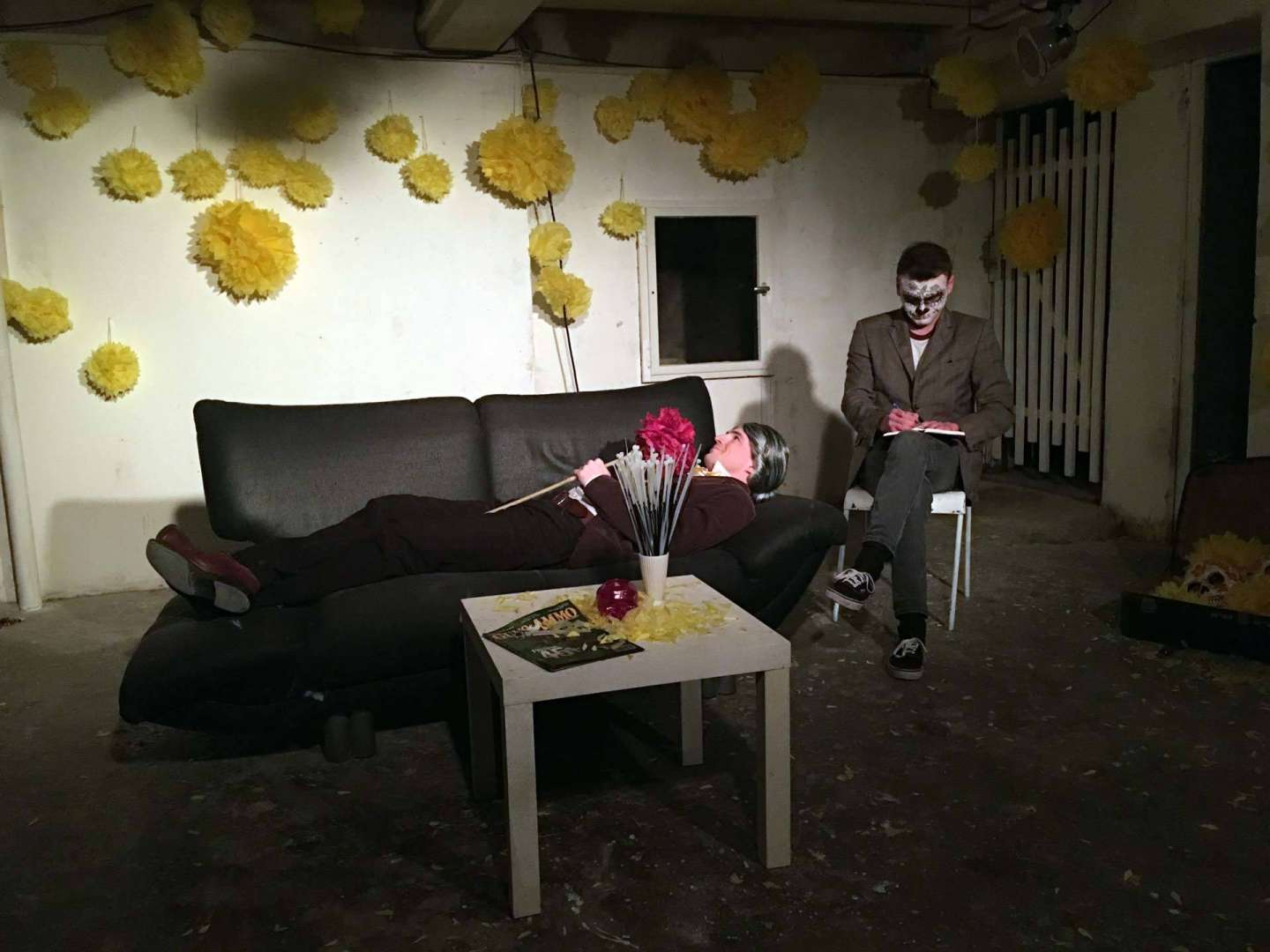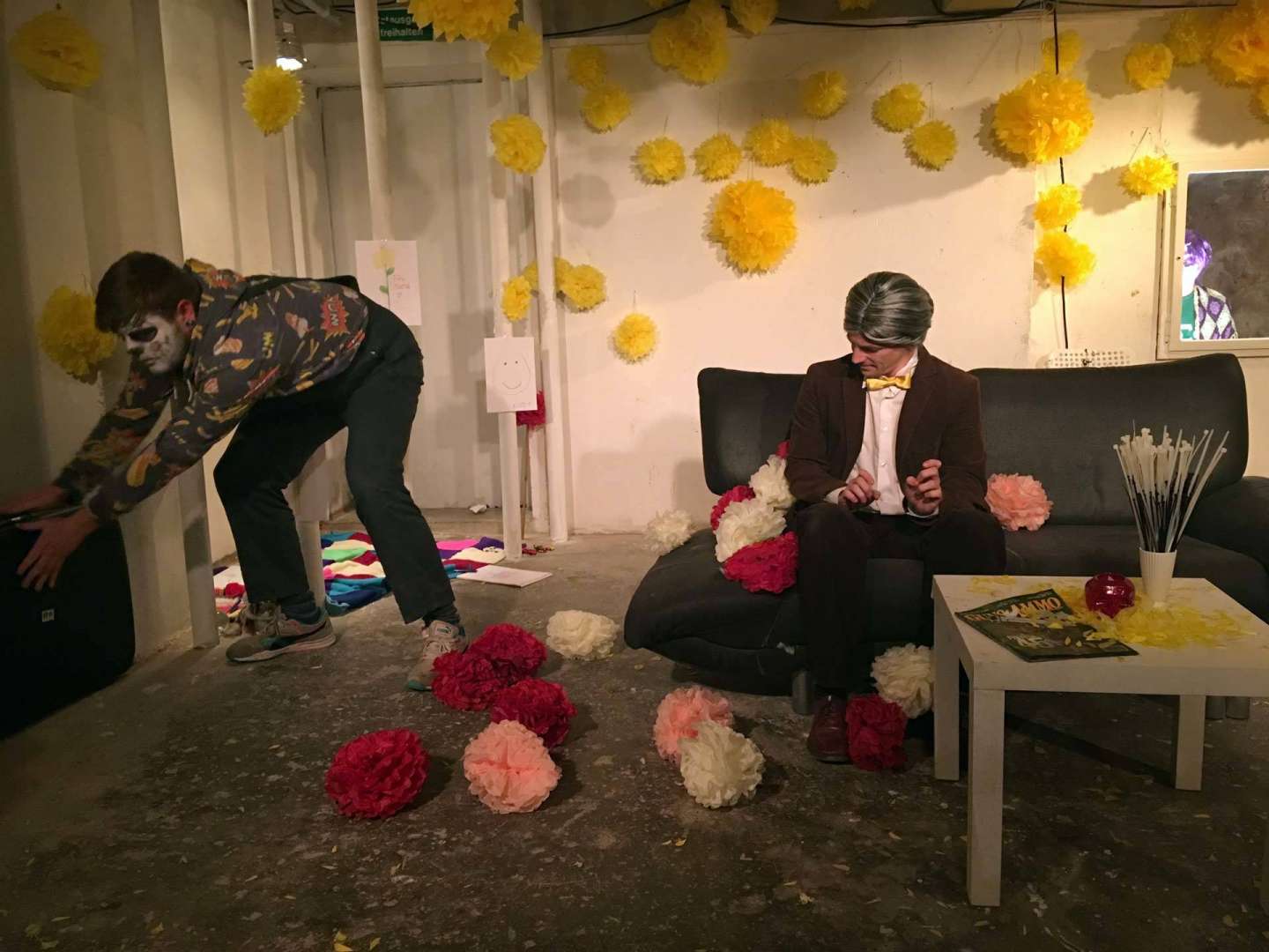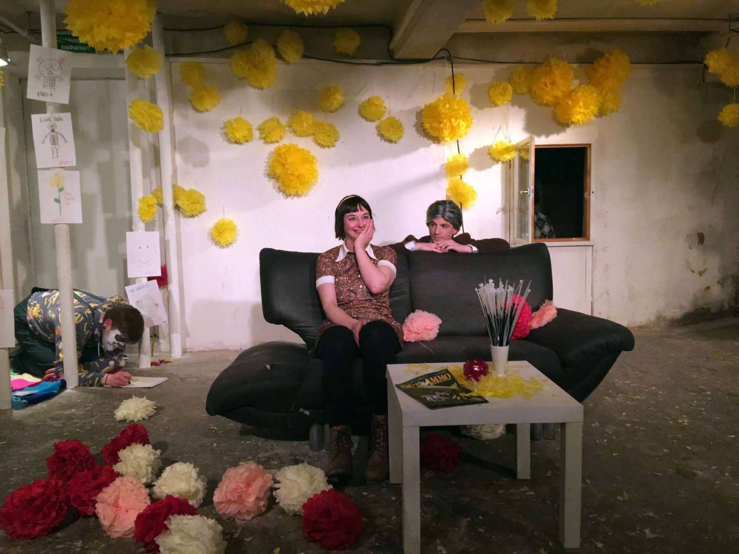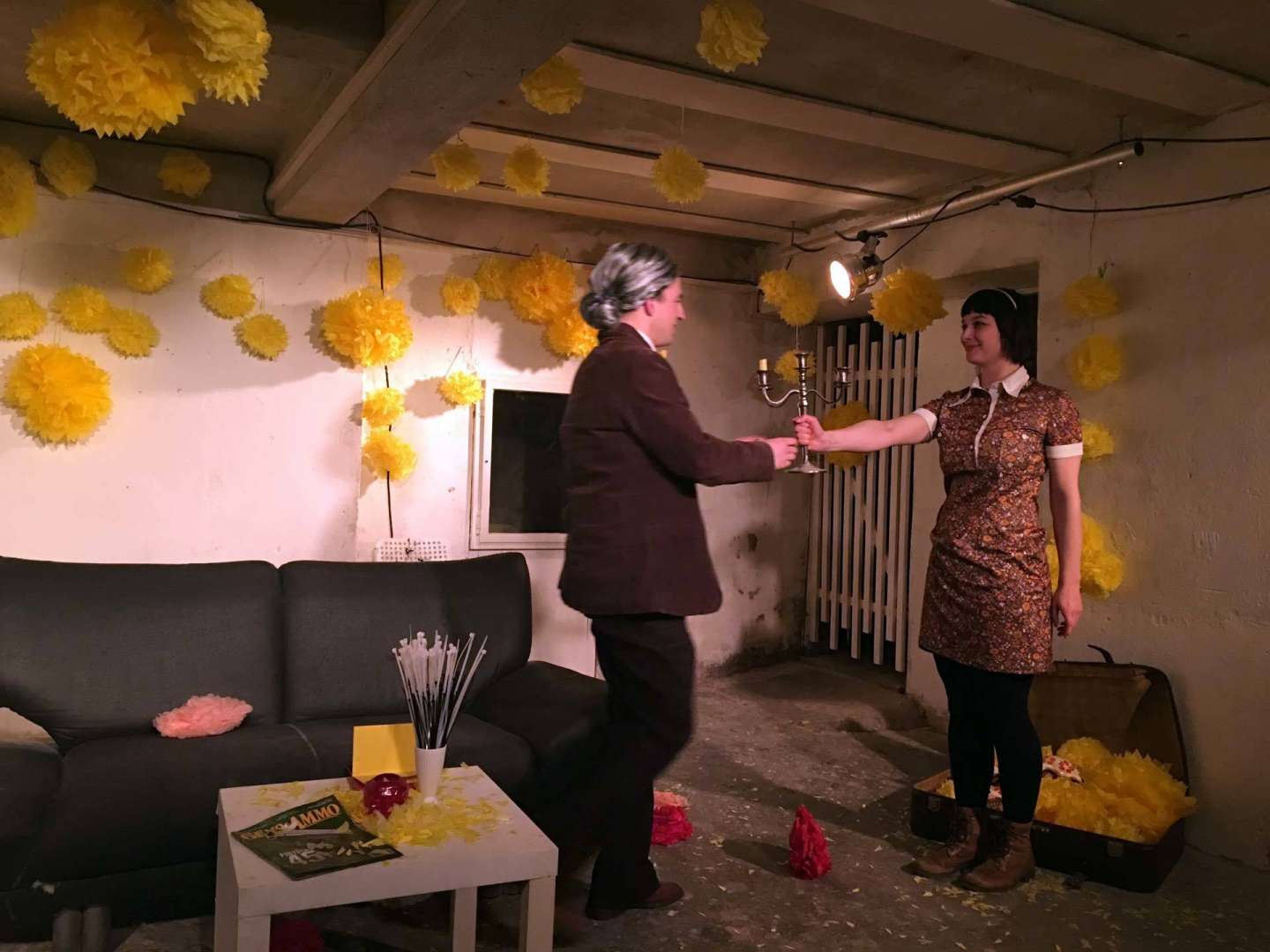 Ihr seit jetzt etwas verwirrt? Macht nichts. Man kann die Welt halt auf unterschiedliche Arten wahrnehmen. Für die Zeit des Stückes habe ich mich für Annas Variante entschieden. Ich habe mich einfach hingegeben und treiben lassen. Auf dem Flyer zum Stück steht noch „Ein surrealer Reigen über Leichen im Keller, Zeitparadoxe sowie Tagträume auf dem Balkon. Gruselig. Komisch. Philosophisch“ Kann ich so unterschreiben und es macht viel Spaß dieser Geschichte zu folgen.